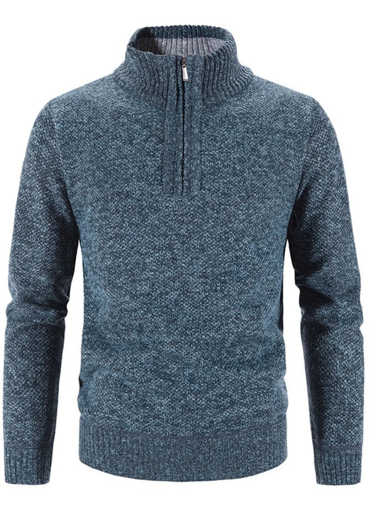 Men's Plus Size Quarter Zip Long Sleeve Sweater