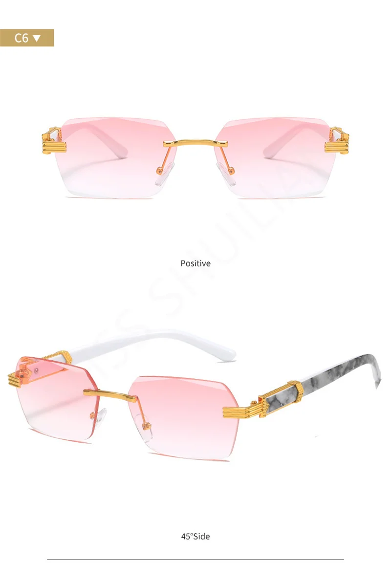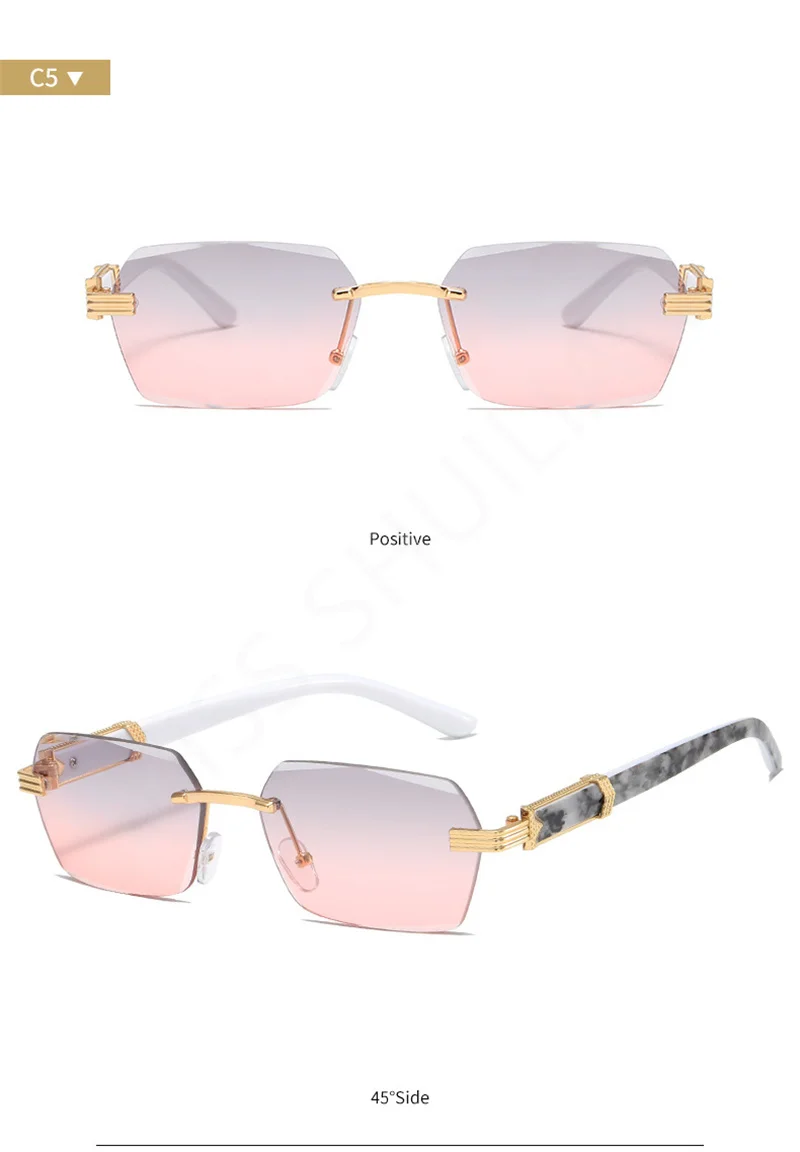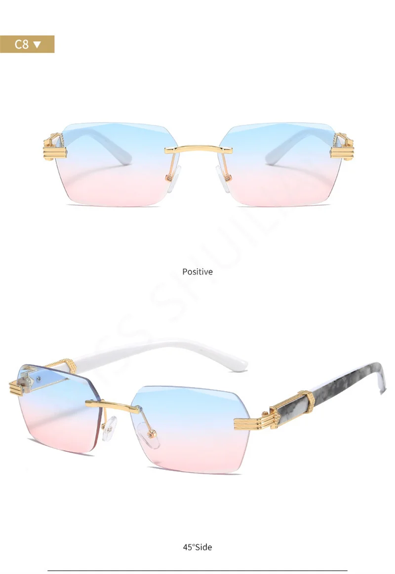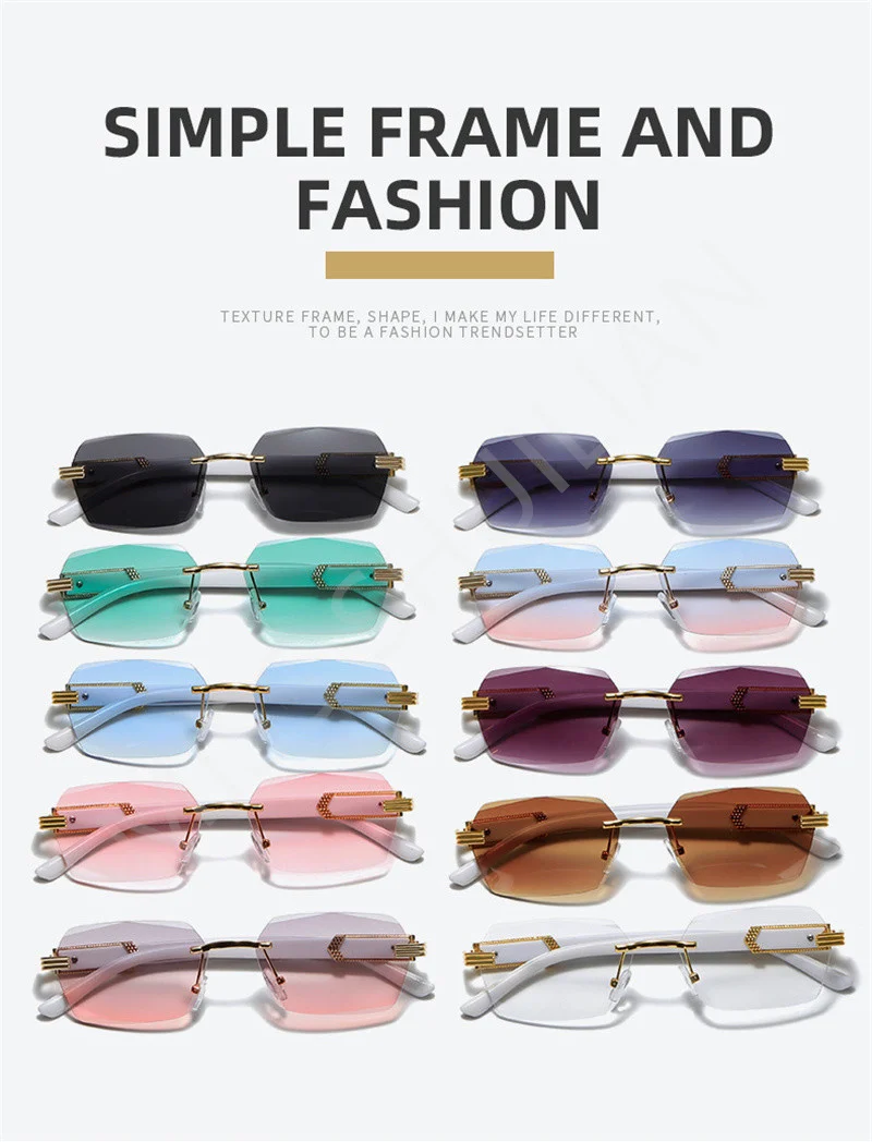 Rimless Sunglasses Personality Square Frameless Ocean Lens Eyeglasses Gradient Gafas De Sol Women Men UV400 Shade Eyewear