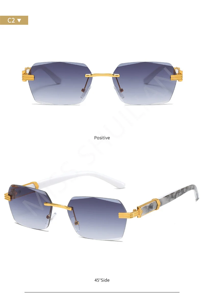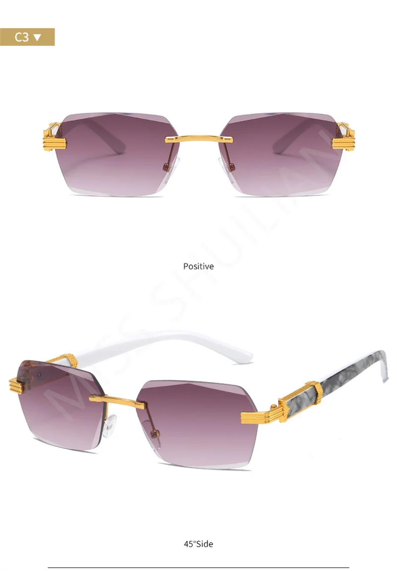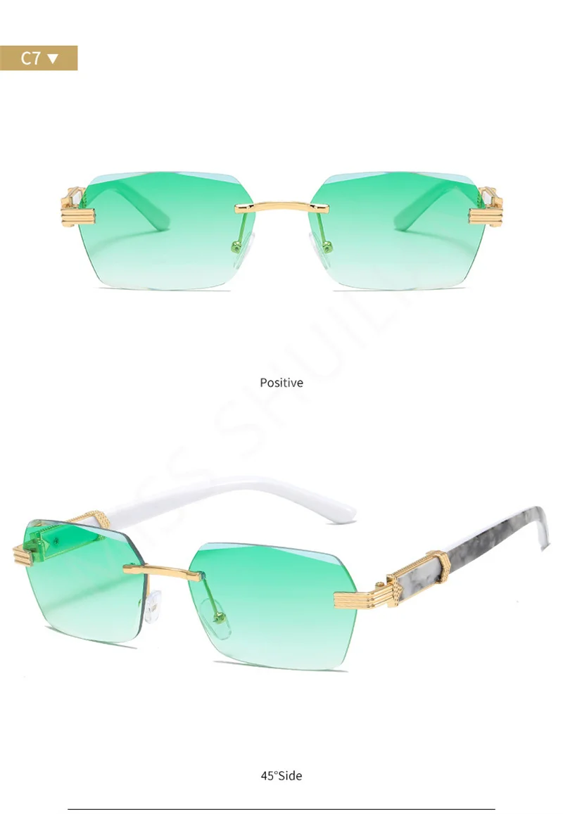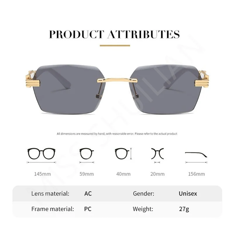 Rimless Sunglasses Personality Square Frameless Ocean Lens Eyeglasses Gradient Gafas De Sol Women Men UV400 Shade Eyewear
