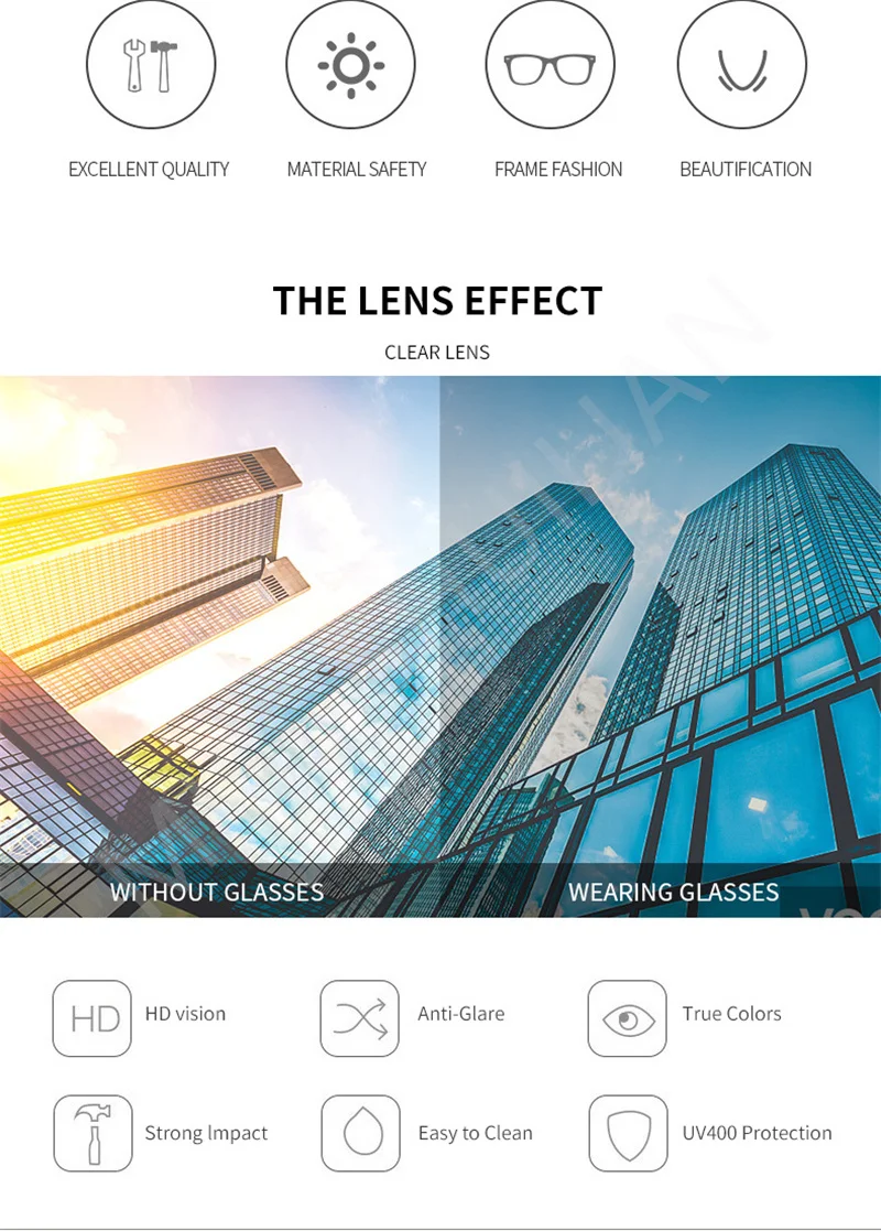 6. Do not use glasses during intense sports, to avoid strong impacts that may cause the lens to break and cause eye and face damage; do not use worn lenses to prevent the dispersion of light from causing vision loss; do not look directly at the sun or strong glare to avoid eyes Hurt.