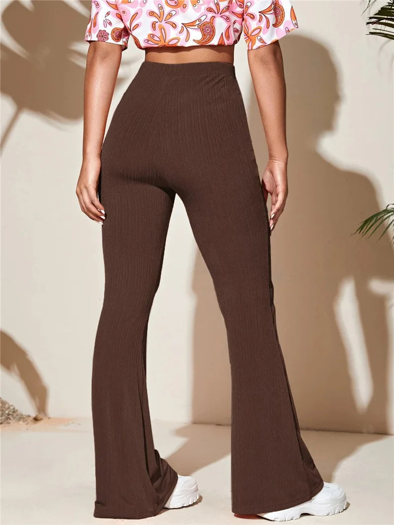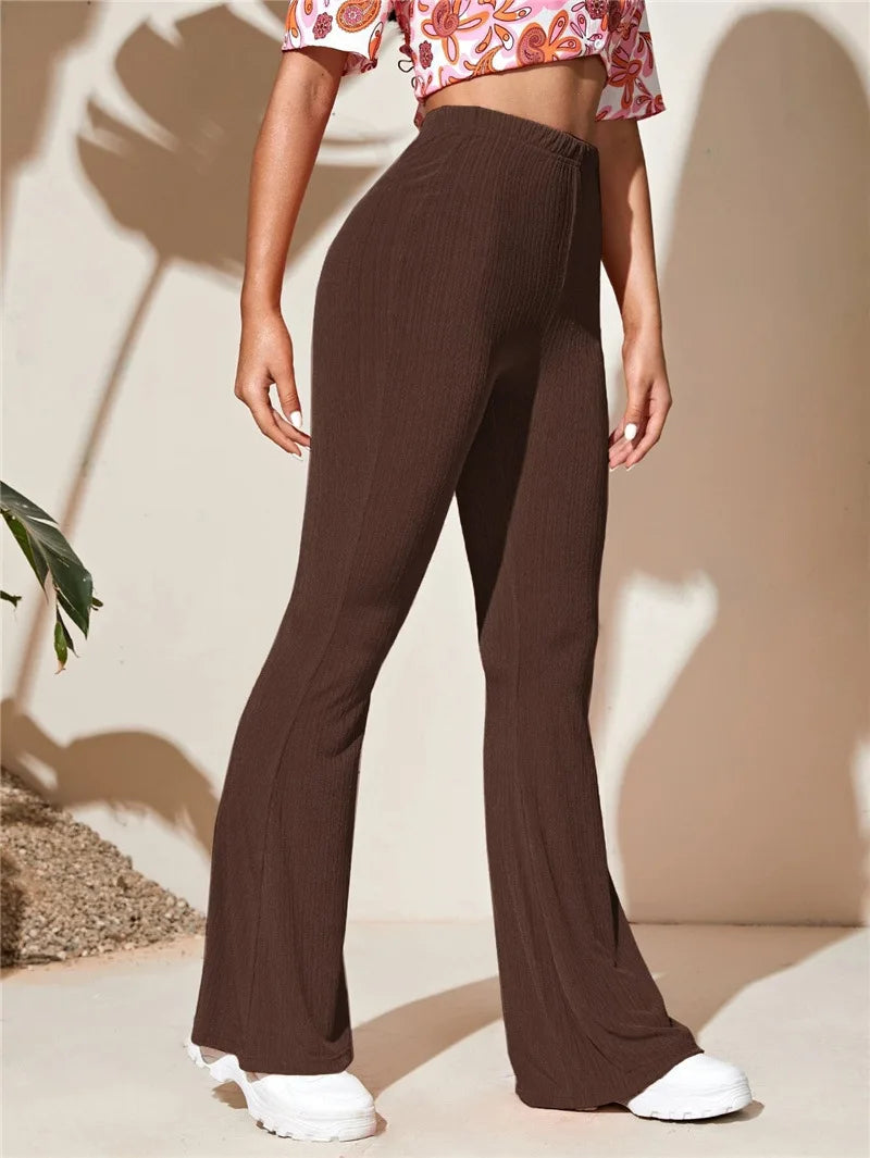 5-Solid Color Tight Flared Pants Women Elastic Long Pants Spring Autumn Y2K Bell-Bottoms Trousers