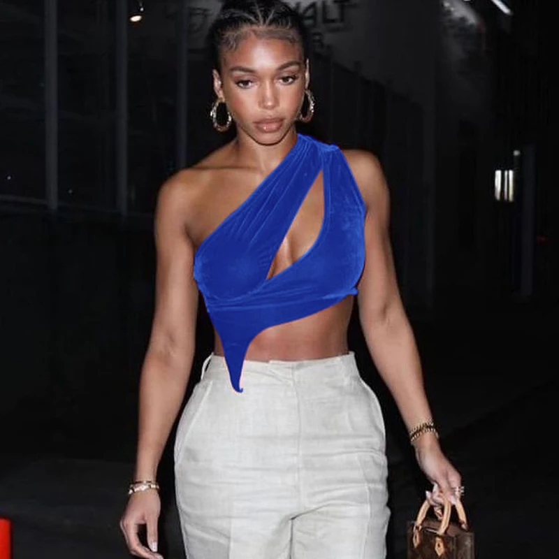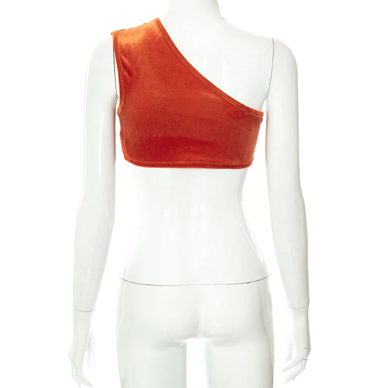 CUTENOVA Tank Top Sexy Fashion Crop Tops Inclined Shoulder Chic Women's Tank Top Hollow Out Bustier Splice Vintage Clothes