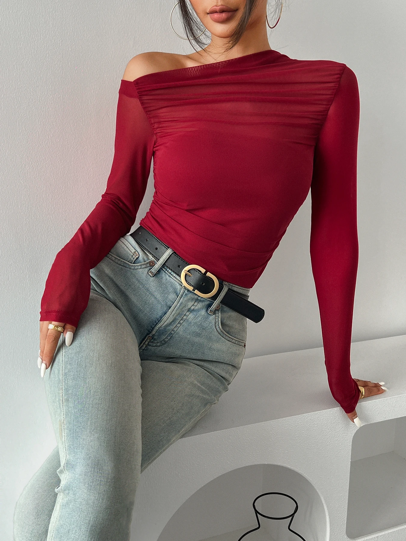 European and American Retro Style Slim Fit Versatile Round Neck Long Sleeve T-shirt Top Shirt New Fashion V Neck Long Sleeve