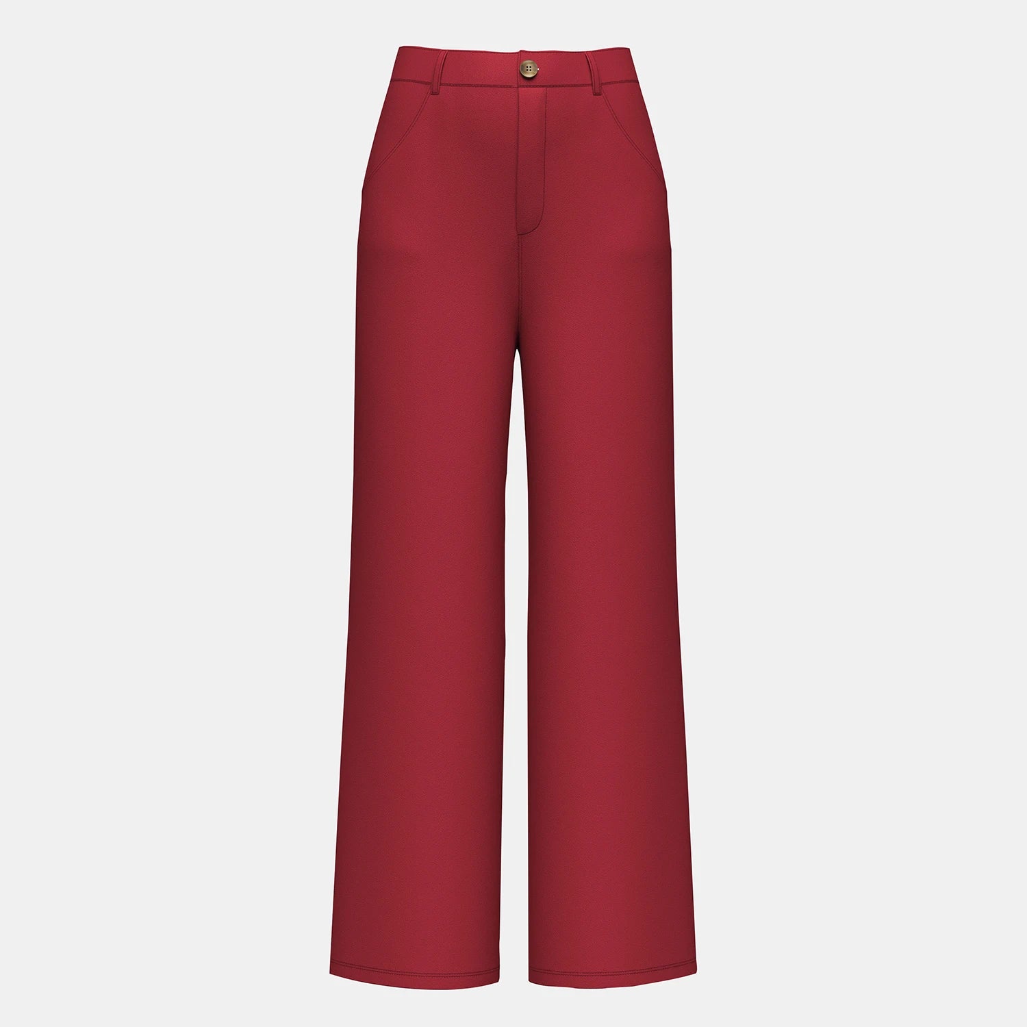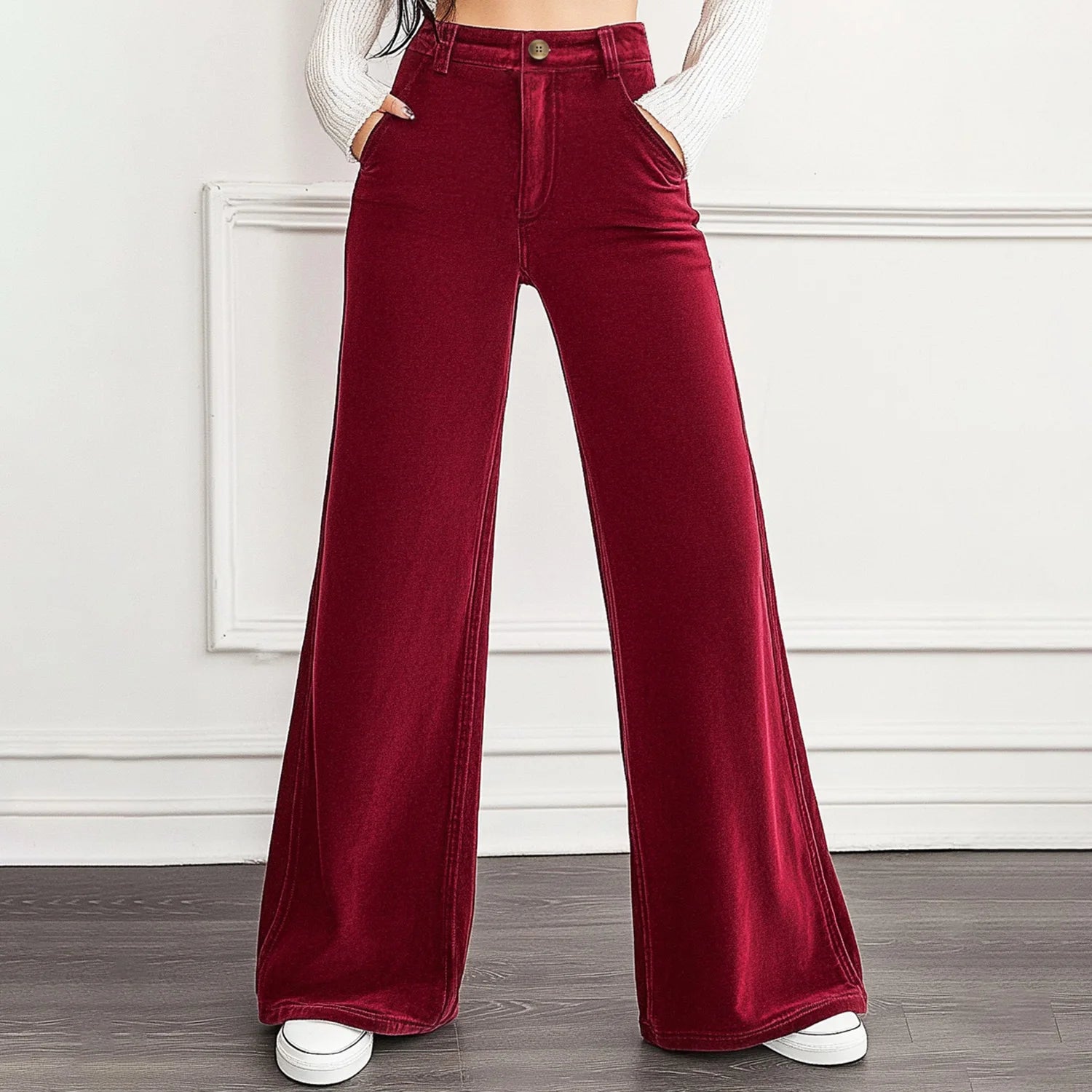 Mia Muse Women's Pants Autumn French Plain Natural Waist Full Length Wide Leg Casual Pants