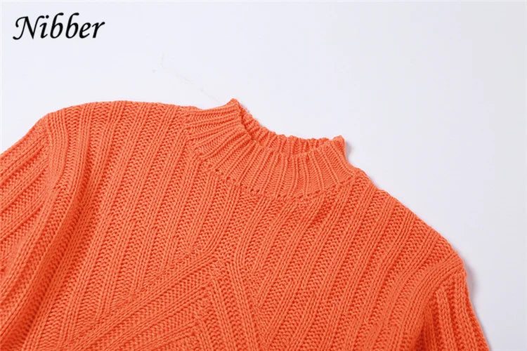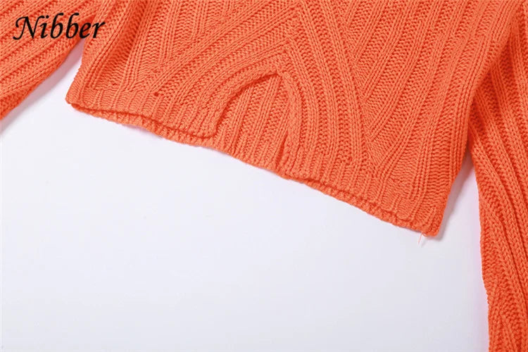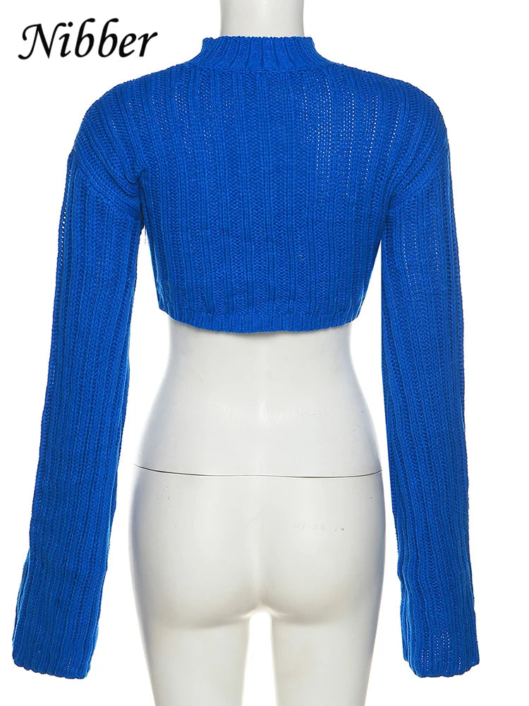 Nibber Autumn Solid Color Pullovers Clother For Women O-neck Midriff-baring Long-sleveed All-match Sweater Streetwear Travel