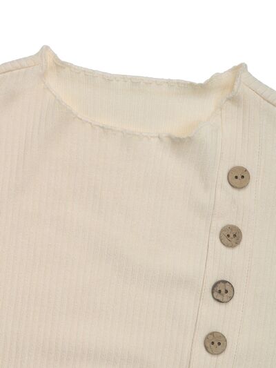 Perfee Decorative Button Round Neck Long Sleeve Bodysuit